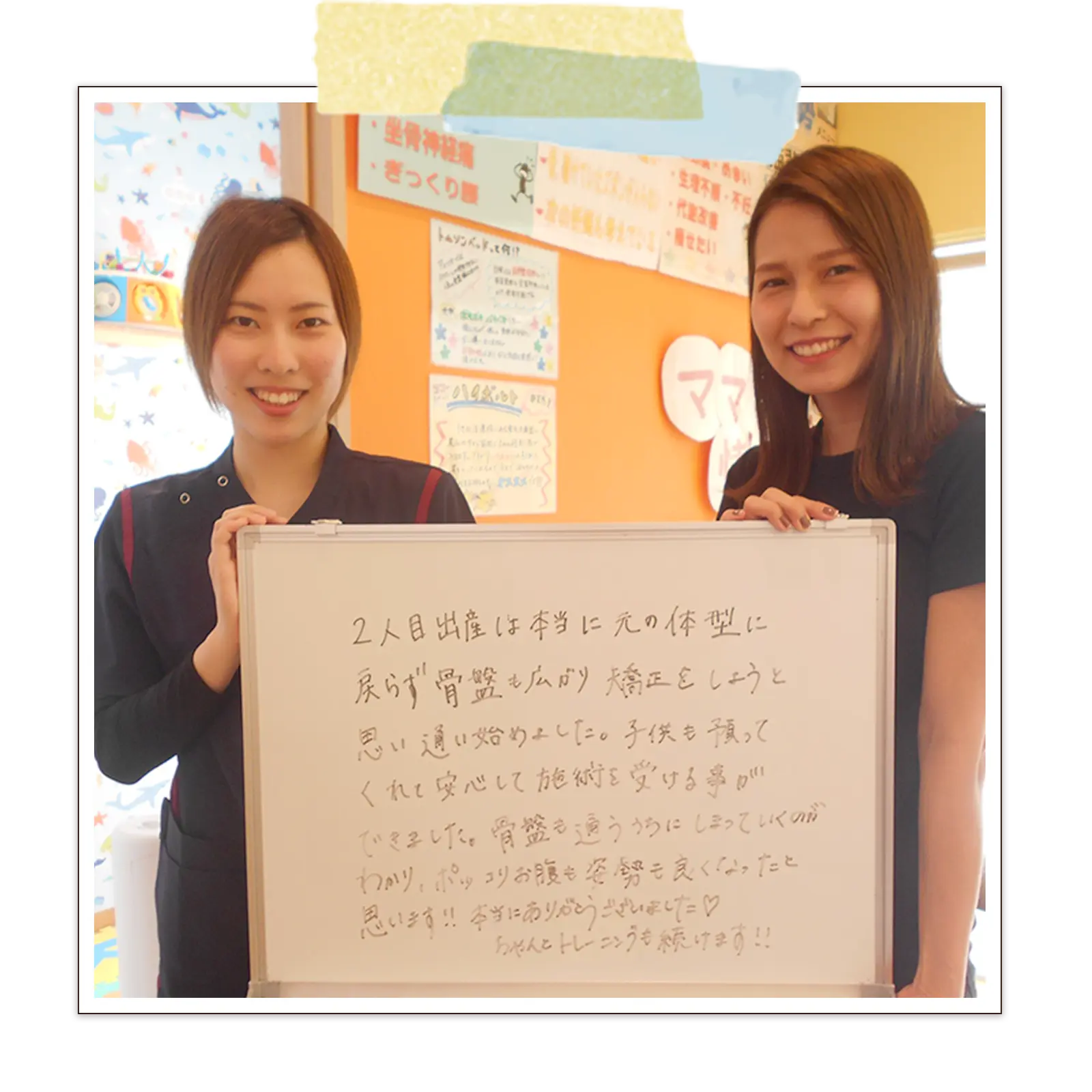 2人目出産は本当に元の体型に戻らず、骨盤が広がり矯正をしようと思い、通い始めました。